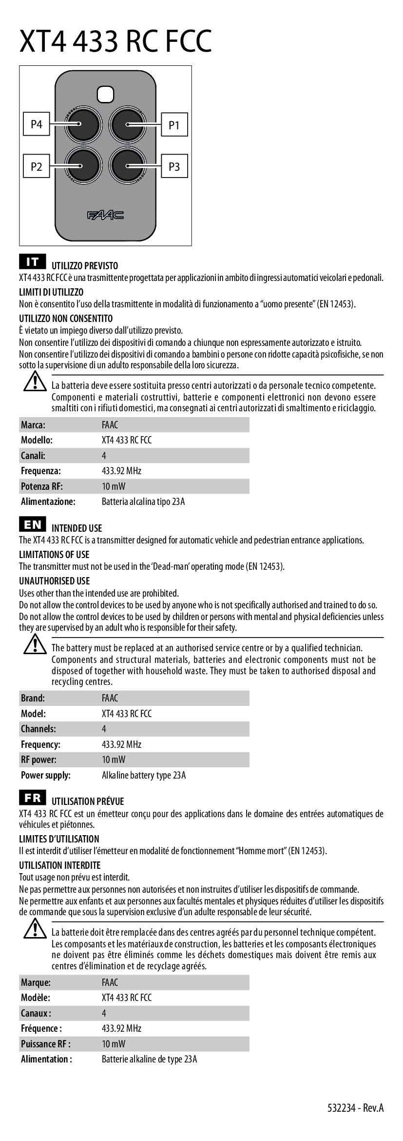 Cada compra del Control FAAC ECHO TX4 incluye: